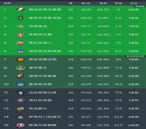 西部最新积分榜