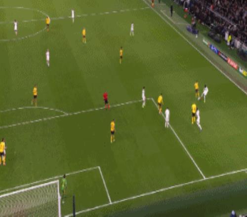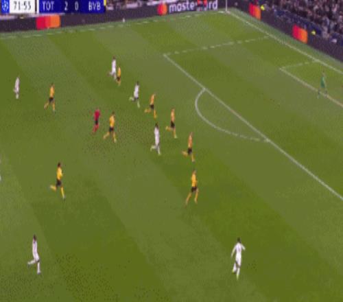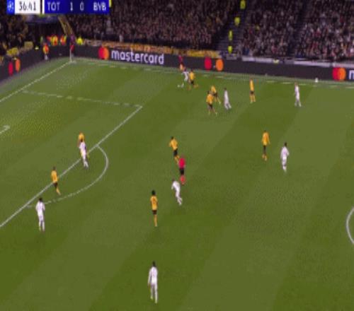 第37分钟,索兰克禁区幸运脚后跟破门,热刺2-0多特