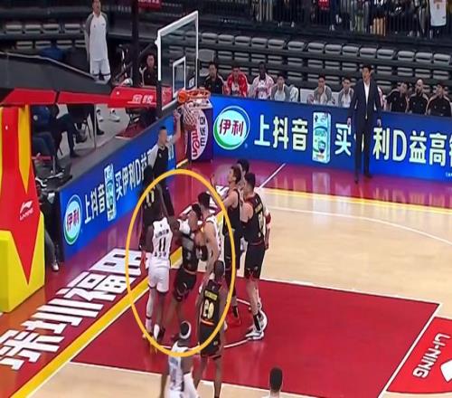 在写比赛分析的时候我用了两队死磕作为标题,然而不巧合的是,这场比赛真的出现了死磕的剧情,这场比赛三位裁判疯狂吹了8次技术犯规,山西队主帅潘江更是不满深圳球员李慕豪的下黑脚坏动作暴怒,冲进赛场内疯狂咆哮导致自己被裁判连吹两次技术犯规被驱逐出场了。