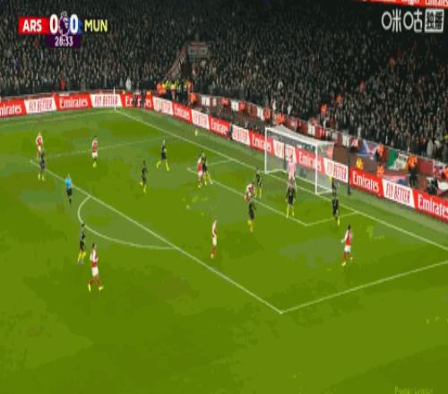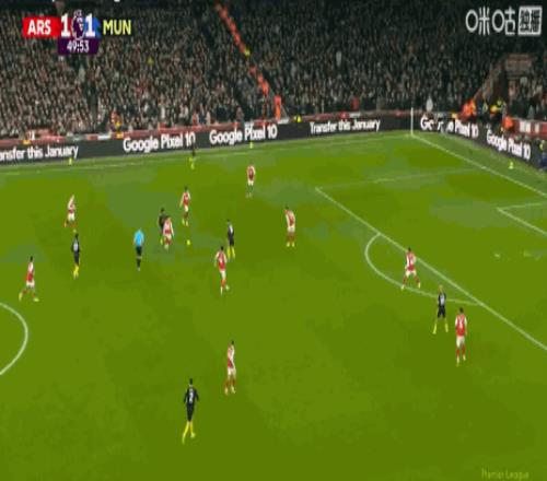 第81分钟,萨卡传中,皮球砸到哲凯赖什肩膀高出横梁