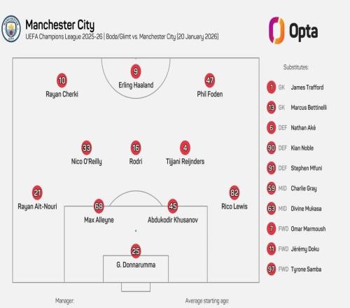 24岁84天,曼城派出队史欧冠最年轻首发阵容